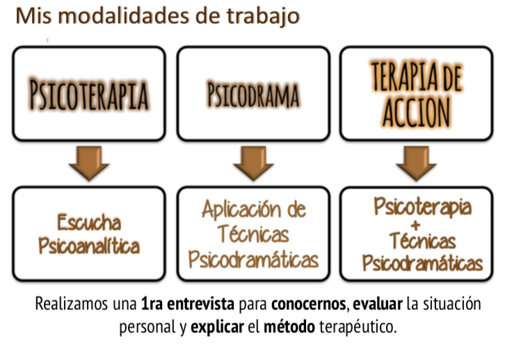 A diferencia de las terapias puramente verbales, usa la palabra y el cuerpo. Su creador, Jacob Moreno, lo definió como «un método para sondear a fondo la verdad del alma a través de la acción». Se actúan escenas vividas, deseadas o temidas y surgen emociones que la palabra no llega nunca a contactar, porque el cuerpo tiene una memoria que se activa en la acción y no en la rememoración.